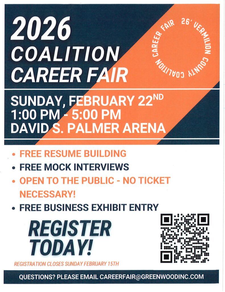 The free event is open to anyone, especially central Illinois and central Indiana job seekers, students, parents, and people who want to learn what is happening in the business community. The event’s highlight will be the businesses, trade organizations, social services and healthcare representatives answering questions and sharing information about immediate position openings.