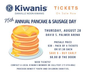 Join us for The 75th Annual Danville Noon Kiwanis Pancake & Sausage Day at the David S. Palmer Arena on August 28th.