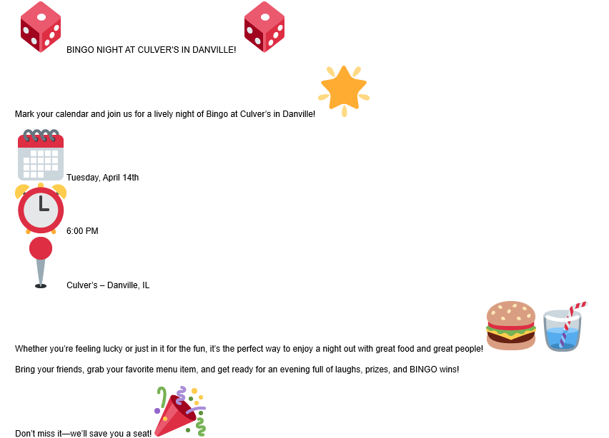 Bingo Night at Culver’s in Danville