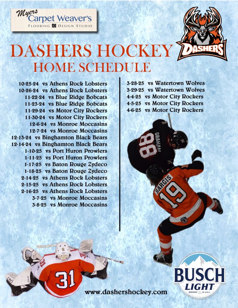 Mark your calendars for the Dashers home opener on Friday, October 25.