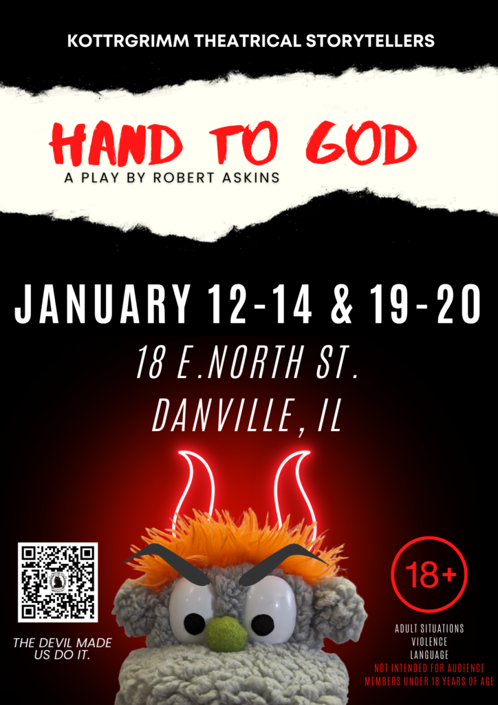 After the death of his father, meek Jason finds an outlet for his anxiety at the Christian Puppet Ministry, in the devoutly religious, relatively quiet small town of Cypress, Texas. Jason’s complicated relationships with the town pastor, the school bully, the girl next door, and—most especially—his mother are thrown into upheaval when Jason’s puppet, Tyrone, takes on a shocking and dangerously irreverent personality all its own. HAND TO GOD explores the startlingly fragile nature of faith, moarality, and the ties that bind us