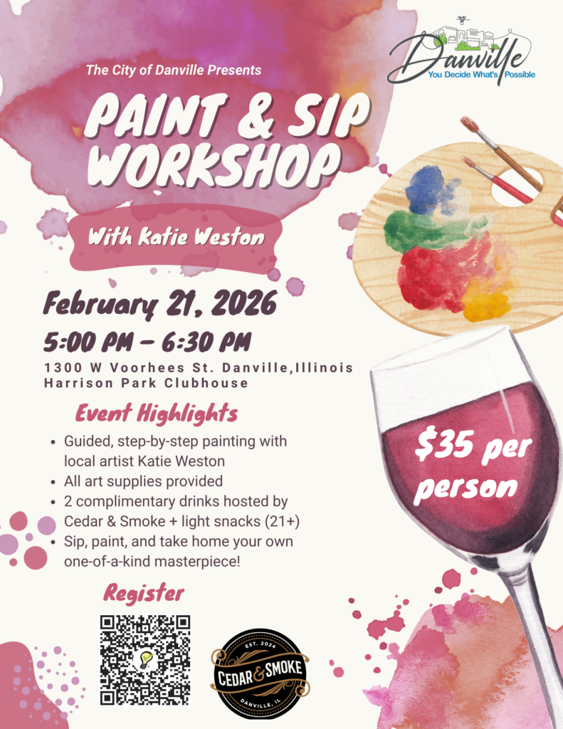 The City of Danville invites adults to unwind and get creative at a Paint & Sip Night on Friday,